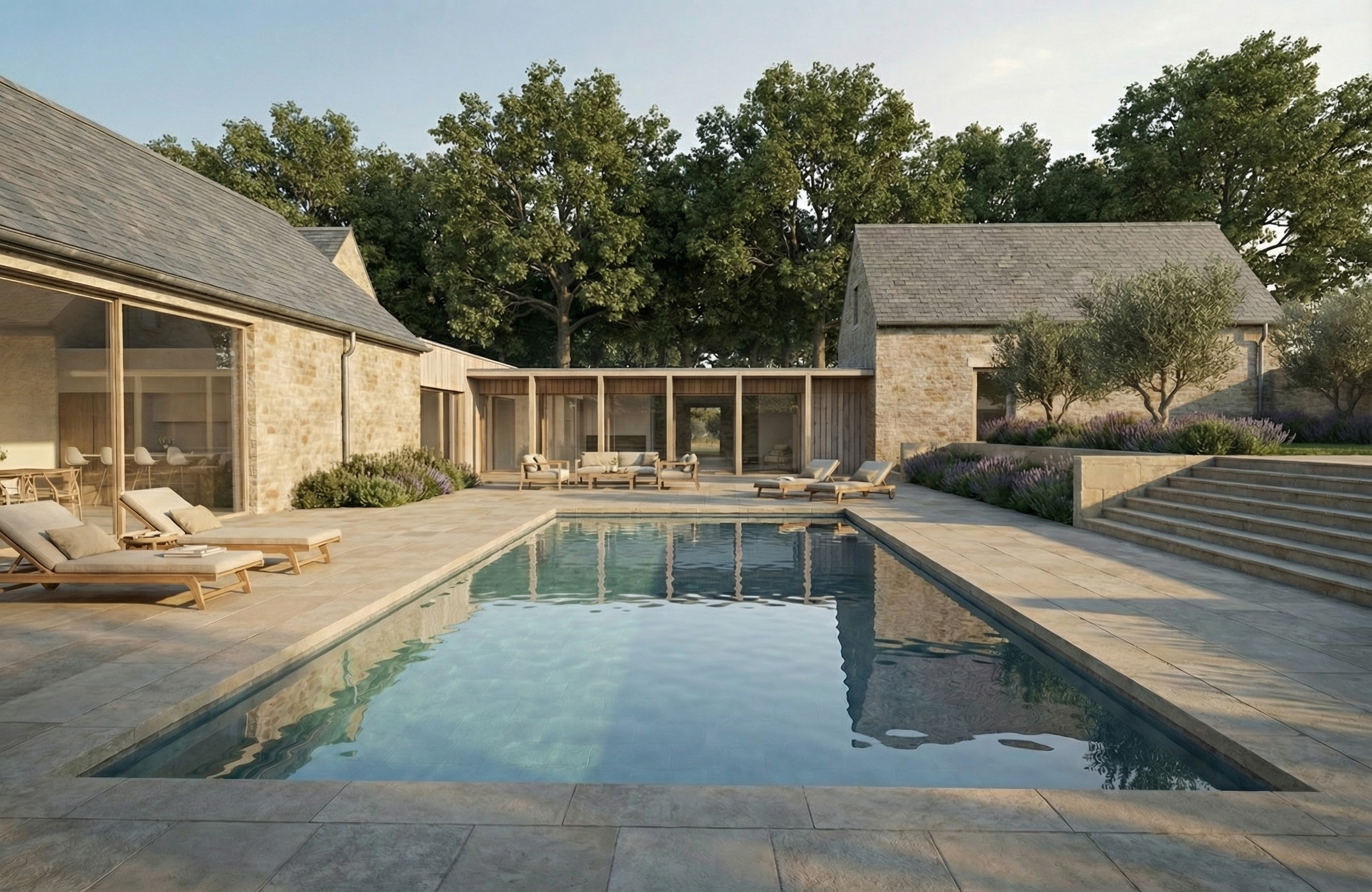 Haslemere Pool House, Haslemere Haslemere A pool house on a secluded site in Haslemere, on the edge of the Surrey Hills, enjoying stunning, long ranging views towards the South Downs and beyond.